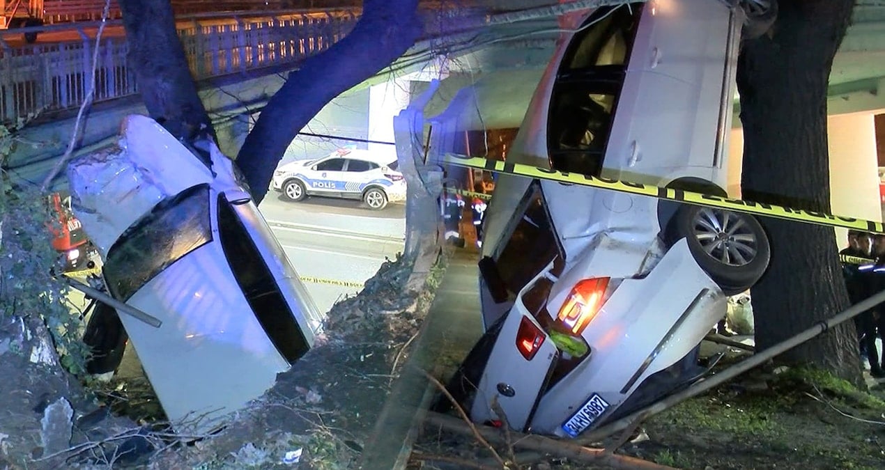 Ataköy’de korkunç kaza: Viyadükten düşüp, ağaçta asılı kaldı